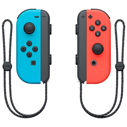 Neon Red/Blue Joy-Con Controllers: Includes vibrant Neon Red and Neon Blue Joy-Con controllers that can be used individually or attached to the console.